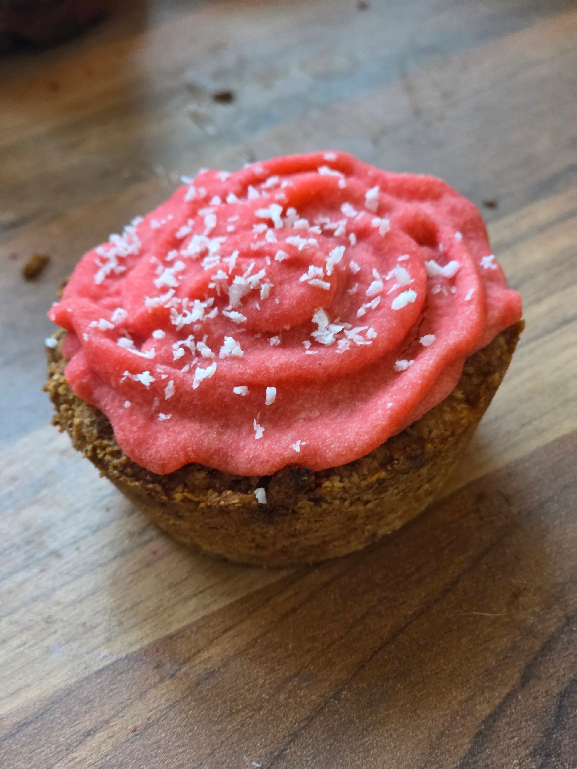 Indulge your pup with our Doggie Cupcakes made with oat flour, chia seeds and coconut oil, topped with a delicious milk yogurt icing. Treat your furry friend responsibly, while always providing fresh water and supervision.